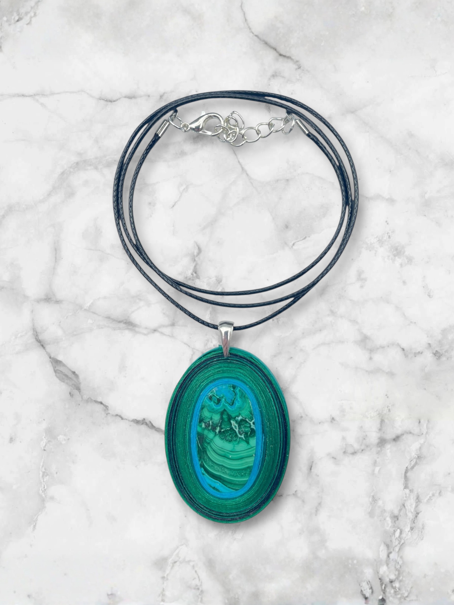 Połączenie malachitu i chryzokoli tworzy naszyjnik, który wspiera harmonię i spokój ducha.