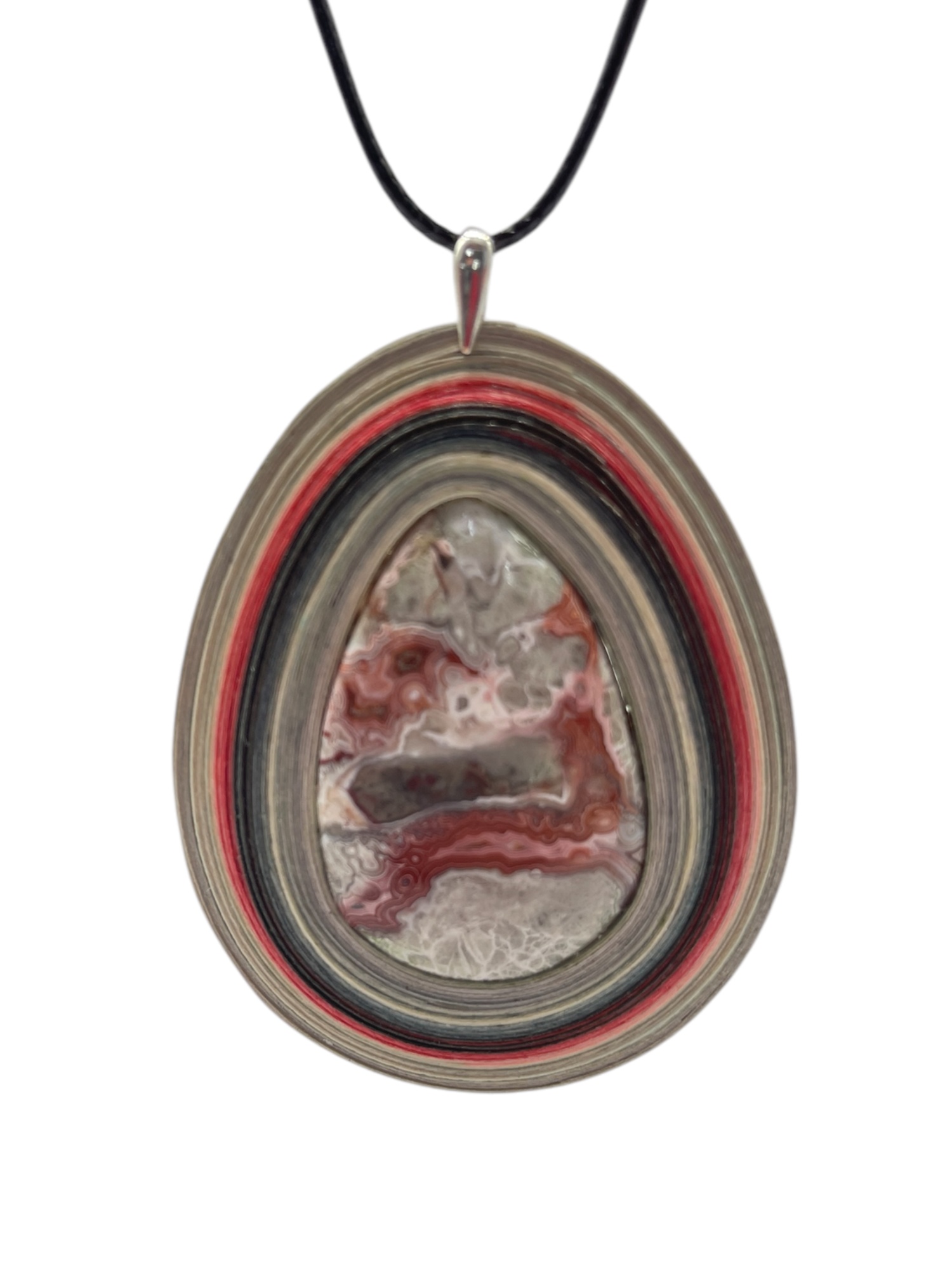 Wykonany z najwyższej jakości drewna osiki, ozdobiony agatem koronkowym.