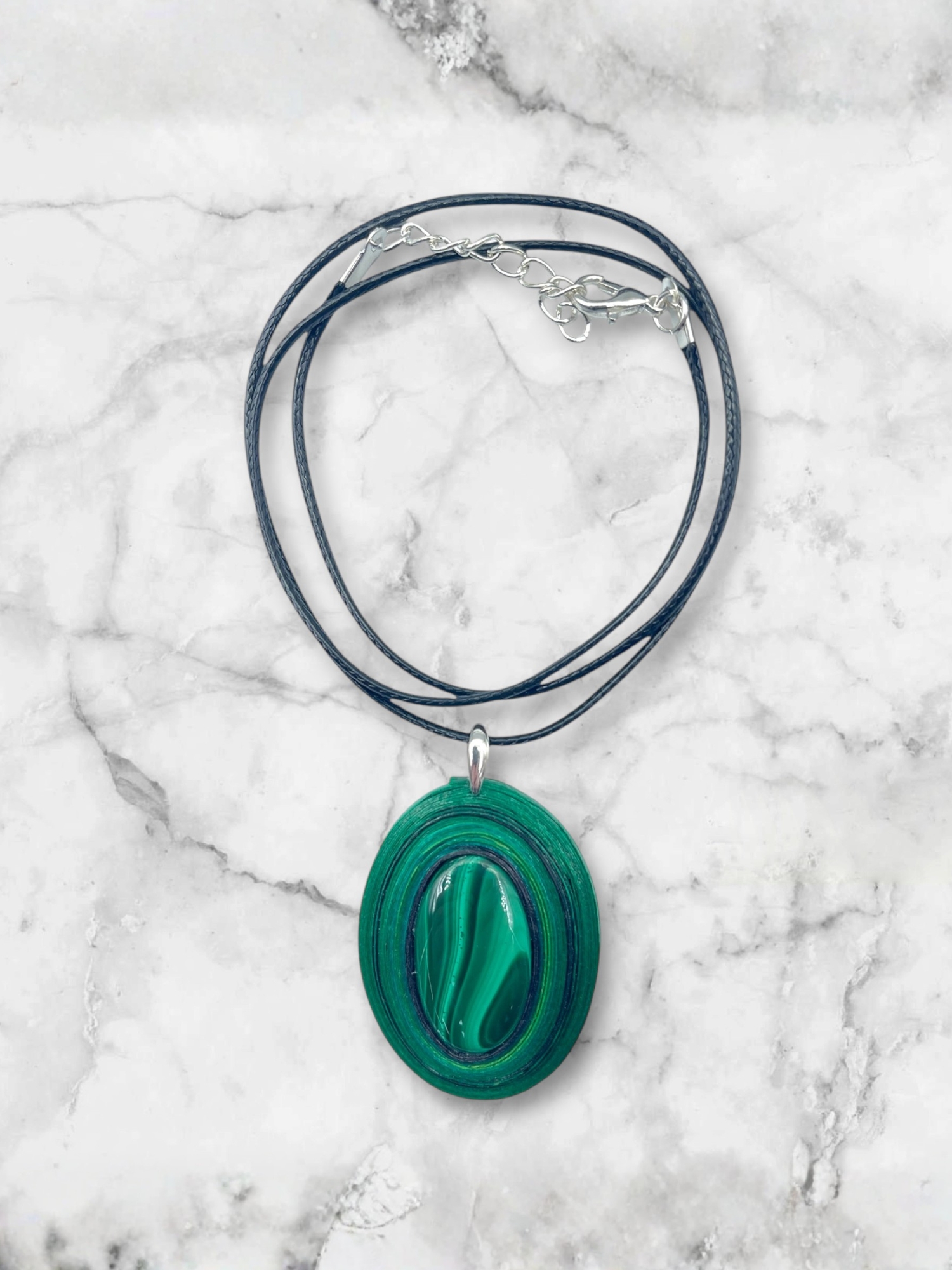 - Zawieszka na sznurku sznurku bawełnianym z łańcuszkiem przedłużającym o długości 51-55 cm.